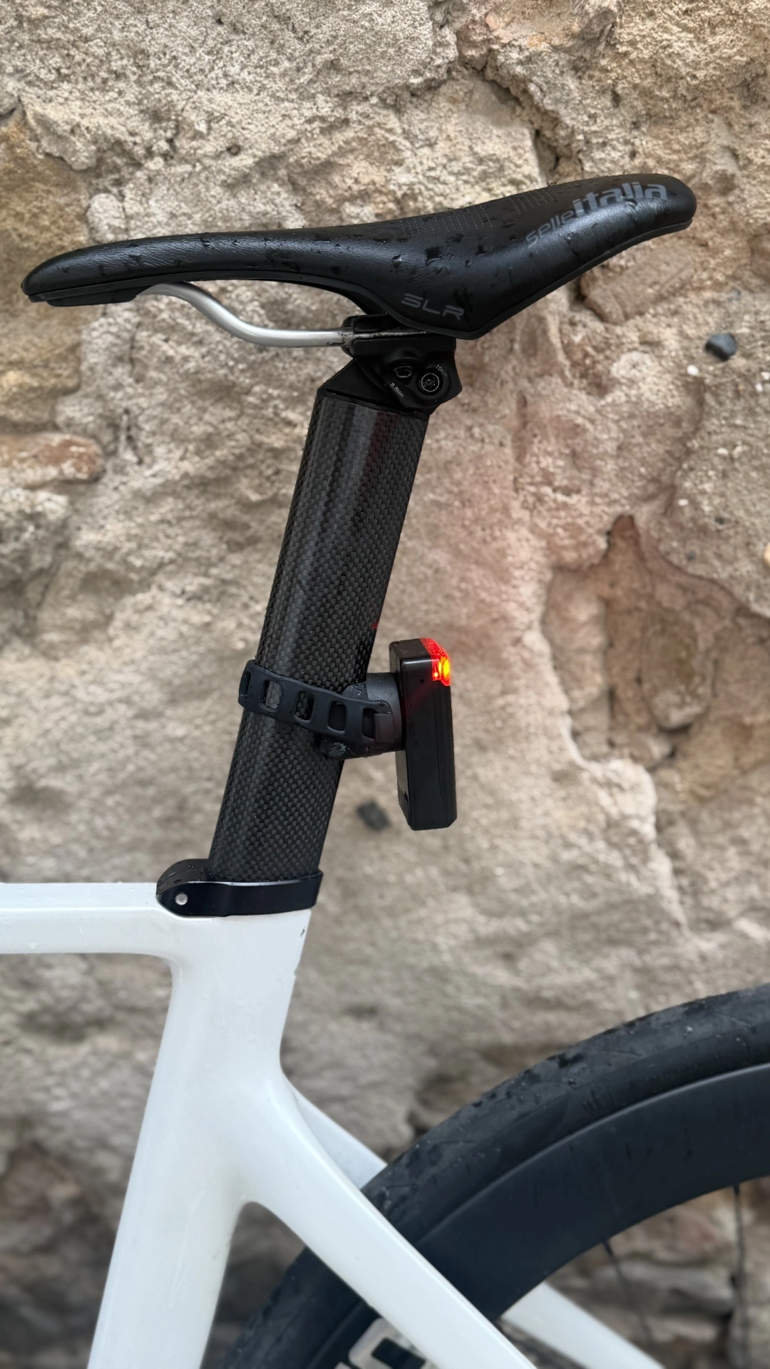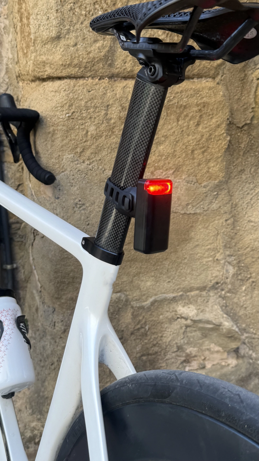 • Lightweight & small: At 67 g and 76.5×37×25 mm, it doesn’t look or feel bulky on the seatpost.