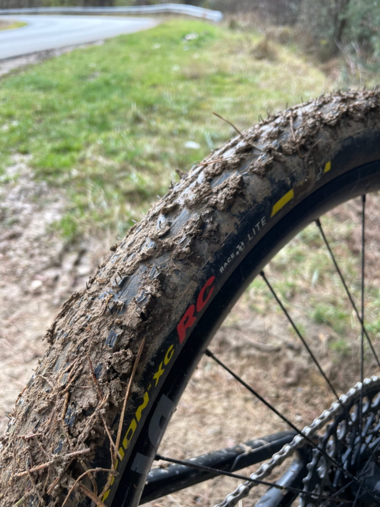 It’s a tyre that is clearly orientated towards speed and acceleration, which I’ve found myself, minimising rolling resistance and keeping the power on as I race and train. The tread pattern is minimal and closely packed, producing a somewhat risky ride in the wet and in rough conditions. However, this also ensures that speed over hard-packed trails – which is the overall purpose of this tyre.